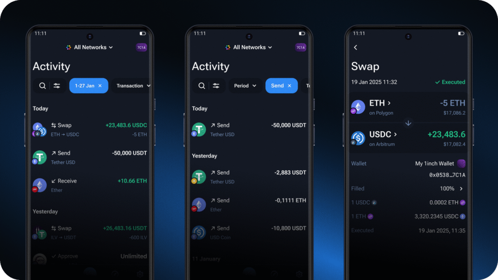1inch supports multiple blockchain networks, allowing you to trade assets across different ecosystems from a single interface.